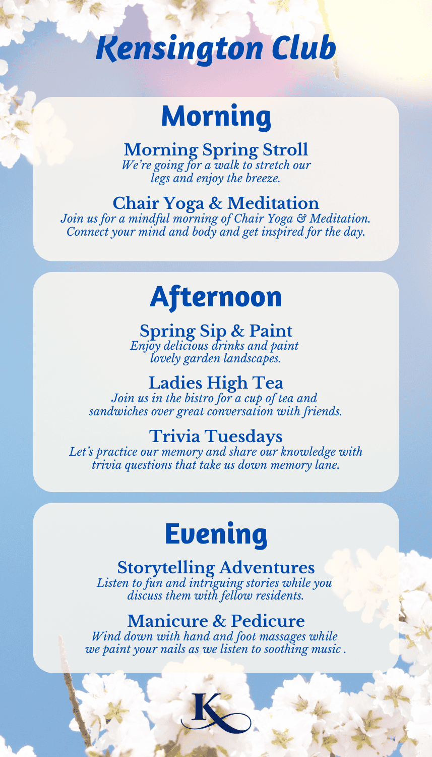 This is why Kensington Park is always seeking and programming new ways to stimulate the mind, strengthen the body, and nourish the spirit of each of our residents.